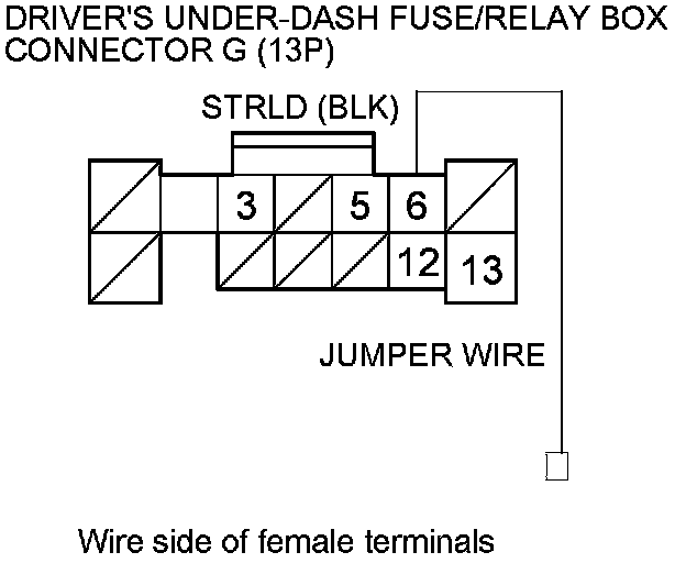 14. Connect driver's under-dash fuse/relay box connector G (13P) terminal No. 6 to body ground with a jumper wire.