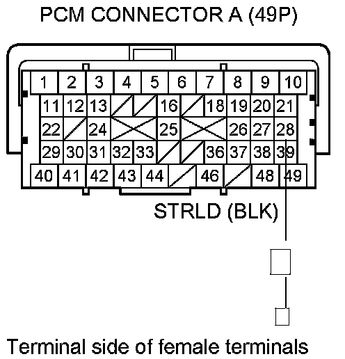 21. Check the STARTER RELAY CONTROL RETURN in the DATA LIST with the HDS while the ignition switch is in START (III) or when you press the engine start/stop button to select the START mode.