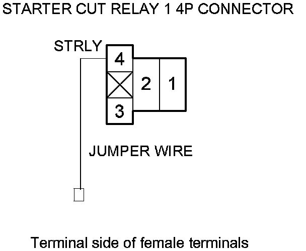 22. Remove the jumper wire from the starter cut relay 1 4P connector.