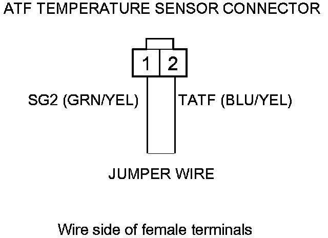 5. Connect ATF temperature sensor connector terminal No. 2 to body ground with a jumper wire.