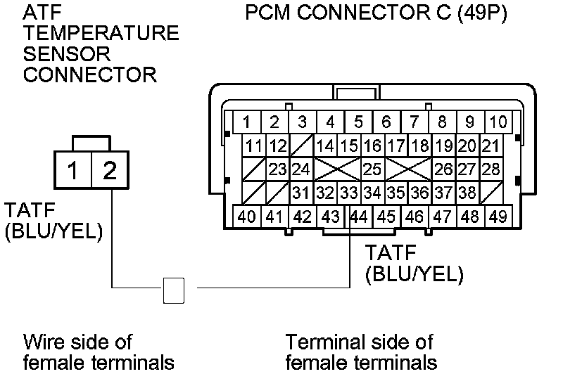 Check for poor connections or loose terminals between the ATF temperature sensor and the PCM. If the PCM was updated, substitute a known-good PCM Initial Inspection and Diagnostic Overview, then go to step 25. If the PCM was substituted, go to step 1.