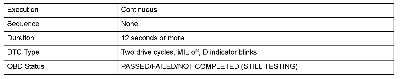 Monitor Execution, Sequence, Duration, DTC Type, OBD Status