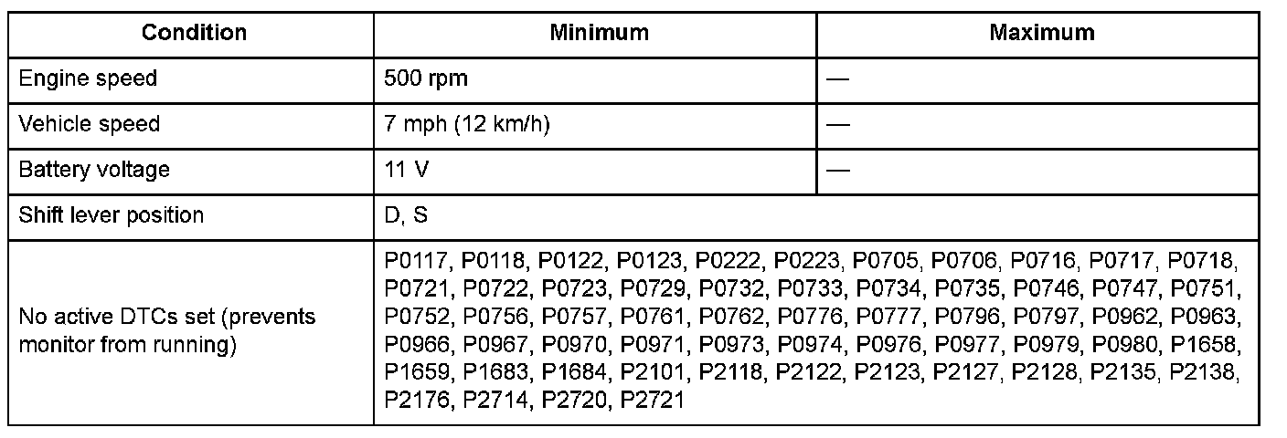 The actual gear ratio must match one of these conditions for at least 12 seconds with the 1st gear shift command: