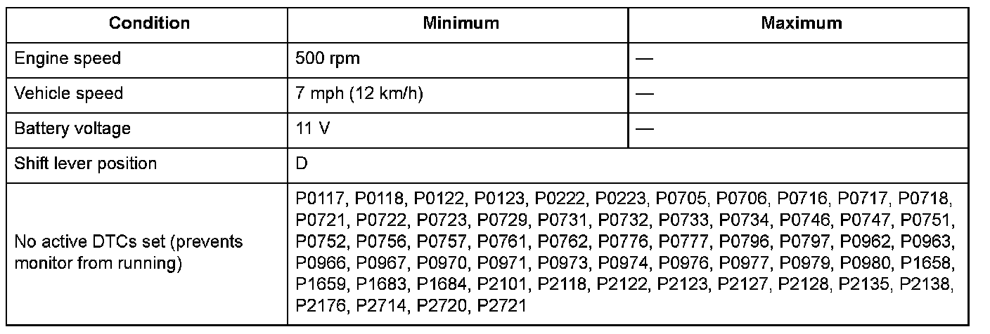 The actual gear ratio must match one of these conditions for at least 12 seconds with the 5th gear shift command: