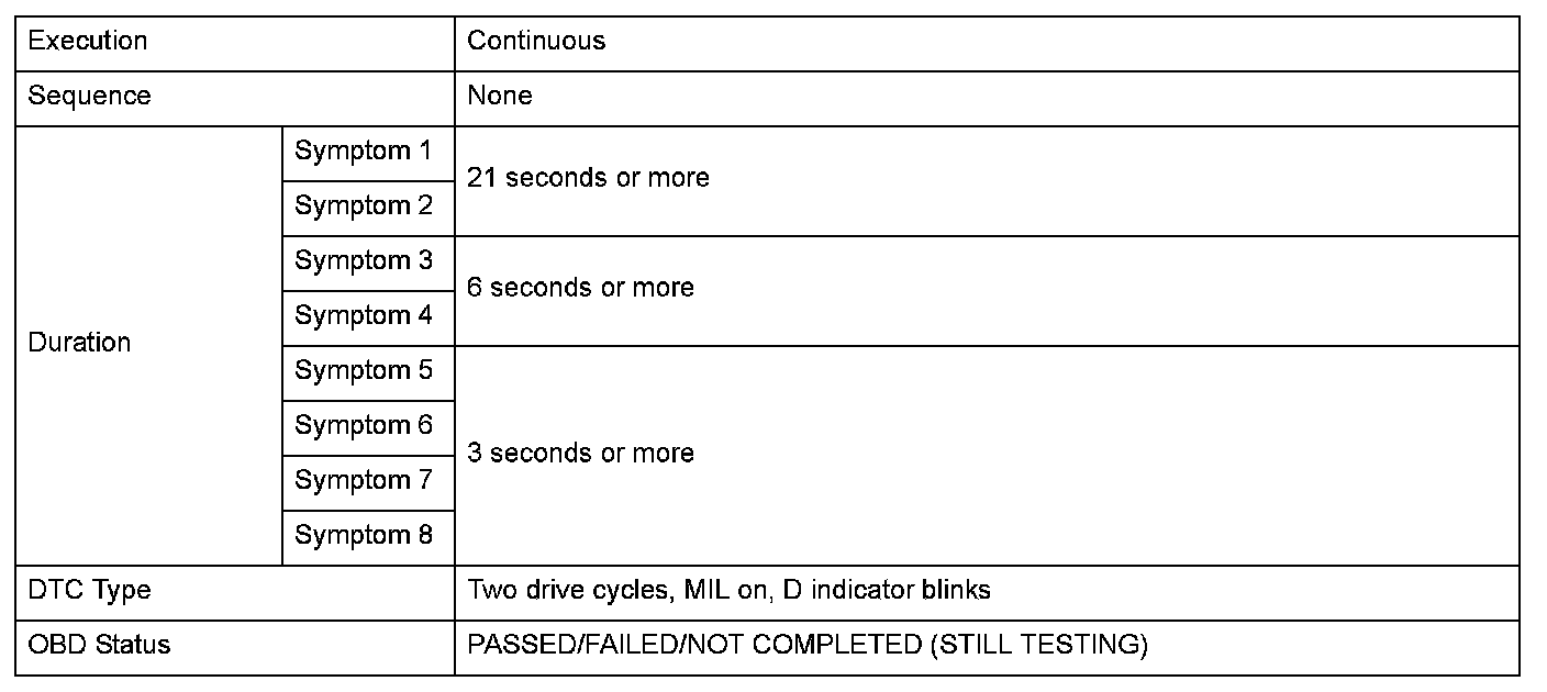 Monitor Execution, Sequence, Duration, DTC Type, OBD Status