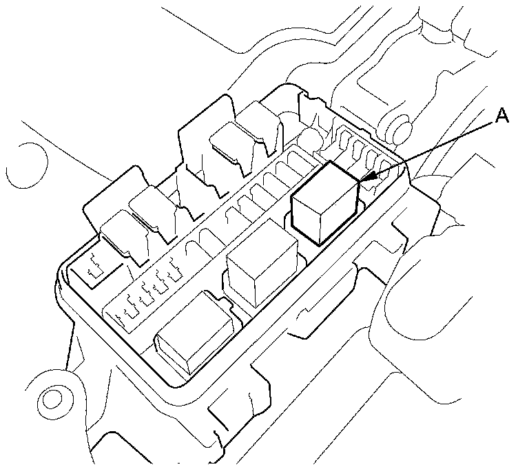 14. Remove the driver's dashboard undercover Driver's Dashboard Undercover Removal/Installation, then remove starter cut relay 1 (A) from the driver's under-dash fuse/relay box.