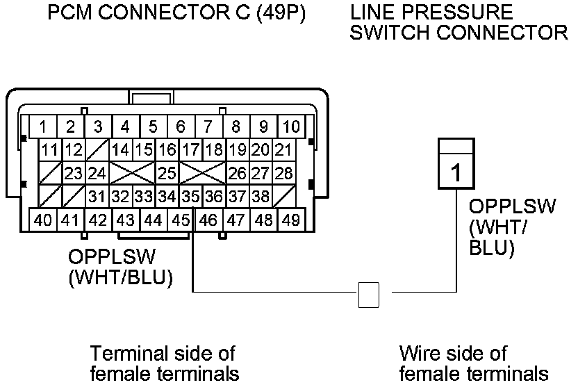 Repair an open in the wire between line pressure switch connector terminal and PCM connector terminal C35.�
