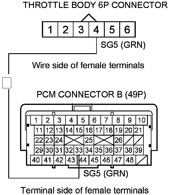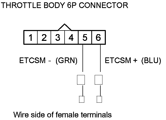 Repair a short in the wire between the throttle body 6P connector and body ground, then go to step 15.