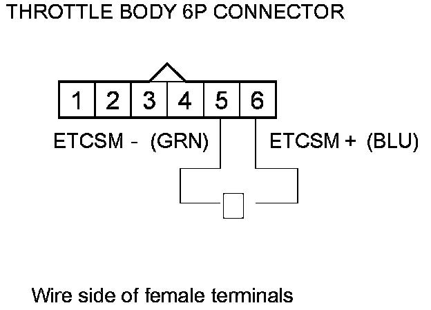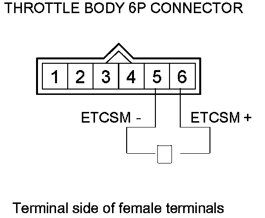 11. Check for continuity between throttle body 6P connector terminals No. 5 and No. 6.