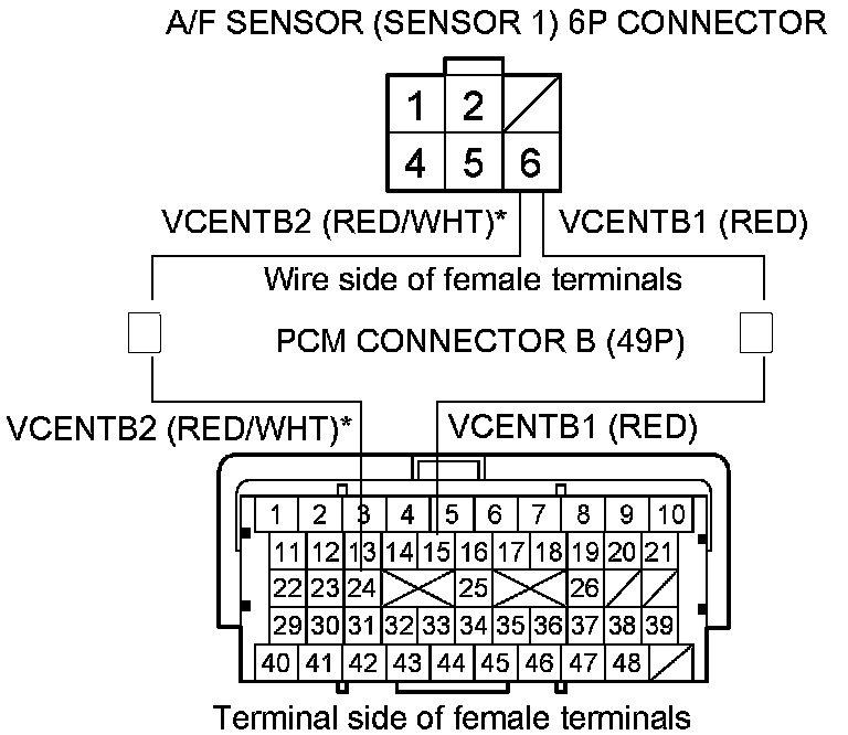 Repair an open in the wire between the PCM (B15 (B24)*) and the A/F sensor (Sensor 1), then go to step 14.