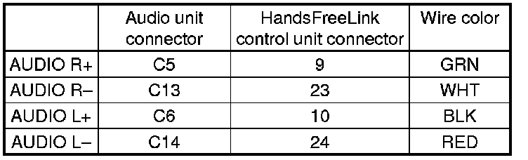 There is an open in the wire(s) between the audio unit and the HandsFreeLink control unit. Replace the affected shielded harness.�