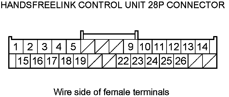 8. Check the connections at the HandsFreeLink control unit 28P connector terminals.