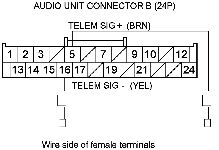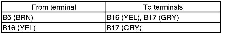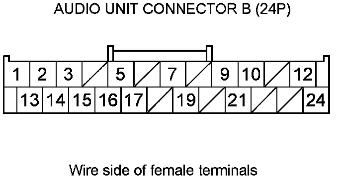 13. Check for continuity between audio unit connector B (24P) terminals according to the table.