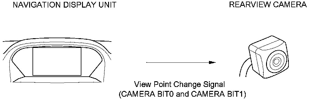 1. The navigation display unit recognizes the signal, and sends a signal to the rearview camera using the CAMERA BIT0 and CAMERA BIT1 signal lines to change the rearview camera view.