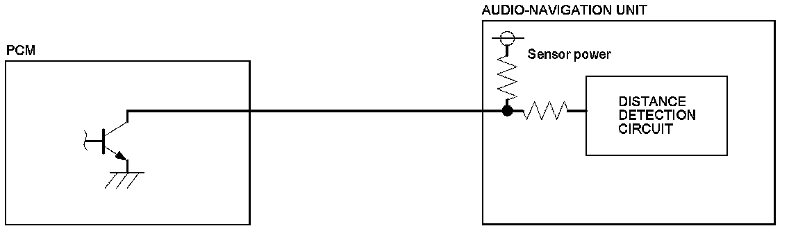 The audio-navigation unit calculates the vehicle position (the driving direction and the current position) by receiving the directional change signals from the yaw rate sensor and the travel distance signals from vehicle speed pulse (VSP) signal of the PCM.