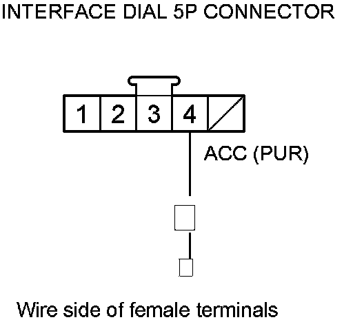 7. Measure the voltage between the interface dial 5P connector terminal No. 4 and body ground.