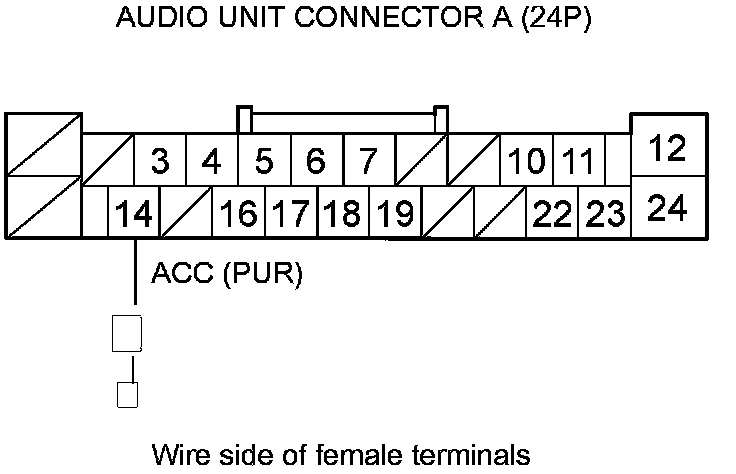4. Measure the voltage between audio unit connector A (24P) terminal No. 14 and body ground.
