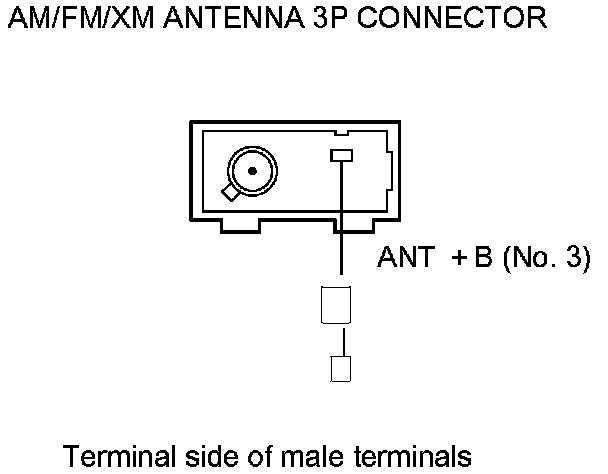 8. Measure the voltage between AM/FM/XM antenna 3P connector terminal No. 3 and body ground.