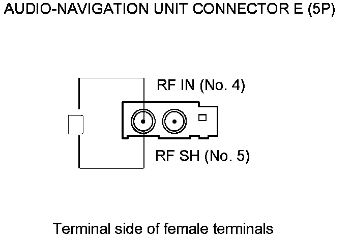 20. Check for continuity between audio-navigation unit connector E (5P) terminals No. 4 and No. 5.