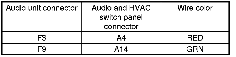 There is an open in the wire(s) between the audio unit and the audio and HVAC switch panel. Replace the affected shielded harness.�