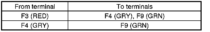8. Check for continuity between audio unit connector F (12P) terminals according to the table.