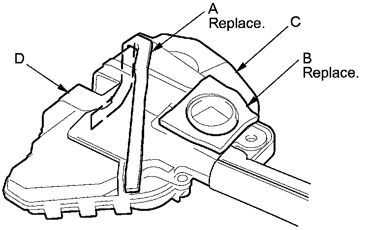 8. Remove the foam seals (A, B) from the latch protector (C) and the latch (D).