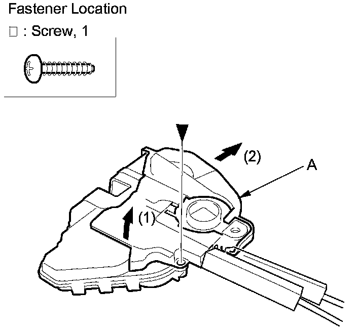 9. Remove the screw, then remove the latch protector (A) as shown.