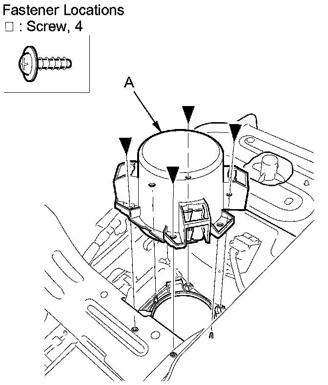 2. From back of the center console, remove the screws and console beverage holder (A).