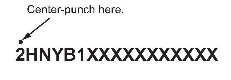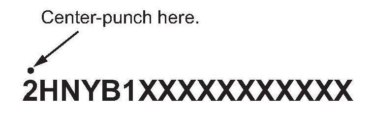 6. Center-punch a completion mark above the first character of the engine compartment VIN.