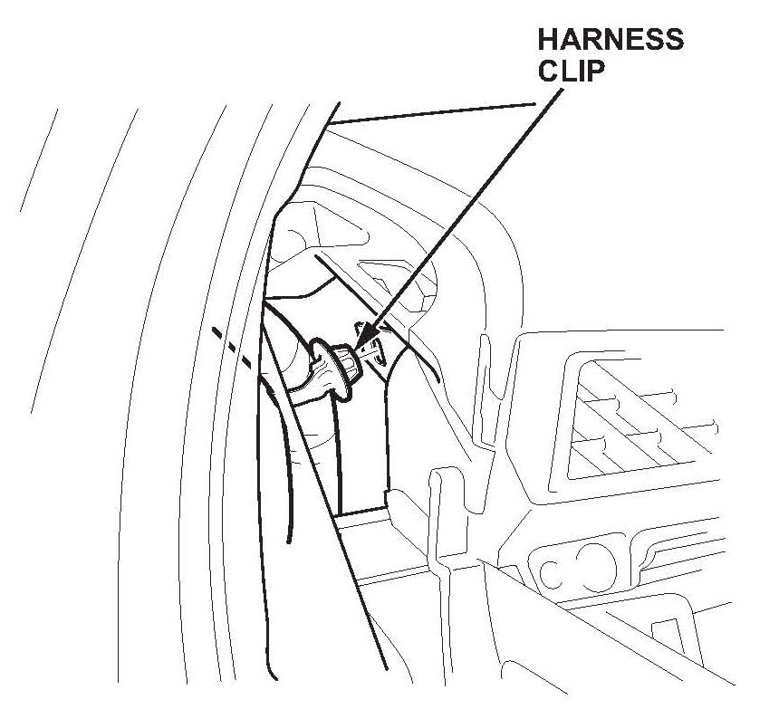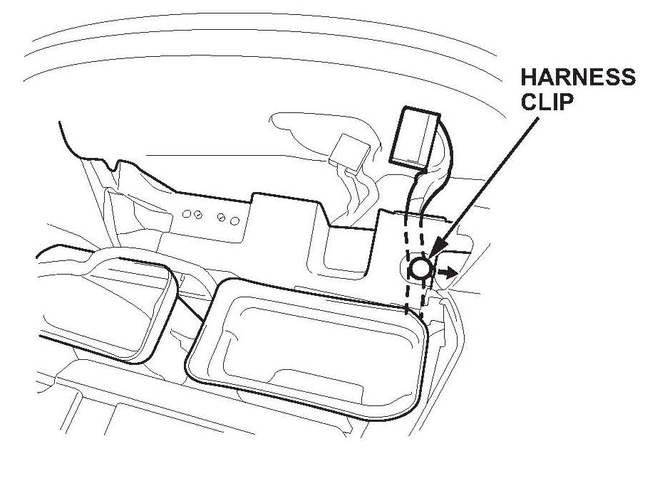 29. Reattach the harness clip at the front center of the dashboard.