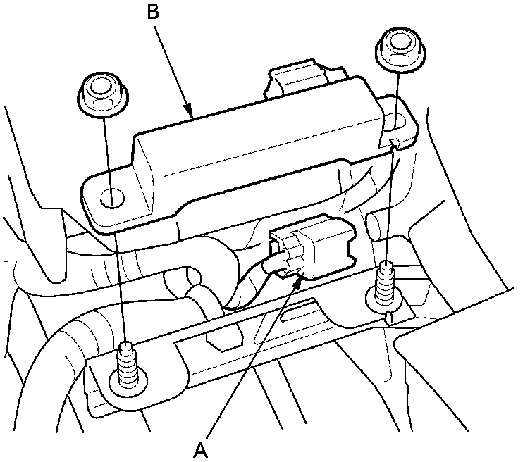 2. Disconnect the 2P connector (A) from the front interior LF antenna (B).