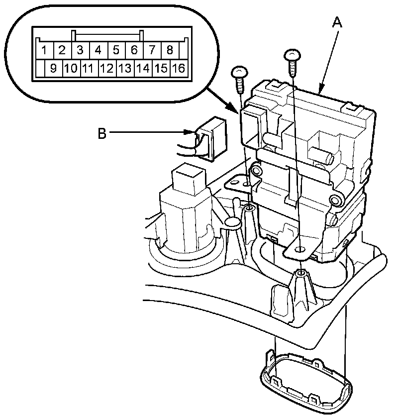 7. Connect the positive battery terminal to remote slot connector terminal No. 16, and the negative battery terminal to terminal No. 8. Check that the remote cannot be removed from the remote slot. Connect the positive battery terminal to remote slot connector terminal No. 8, and the negative battery terminal to terminal No. 16. Check that the remote can be removed from the remote slot.