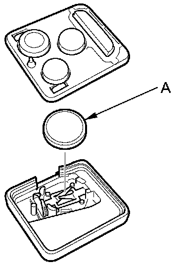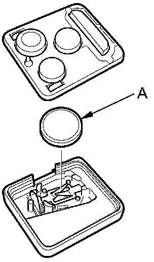 4. Replace the transmitter battery (A) with a new one (CR1616), and try to lock and unlock the doors with the transmitter by pressing the lock or unlock button five or six times.