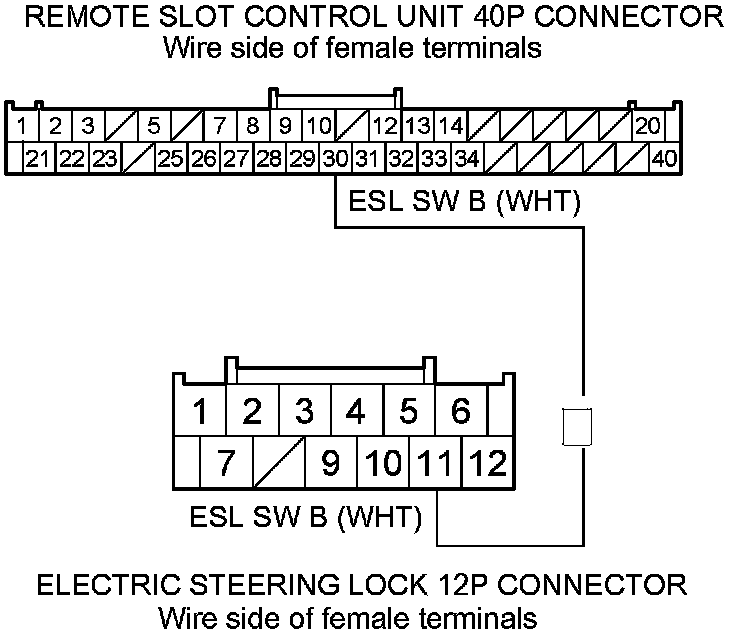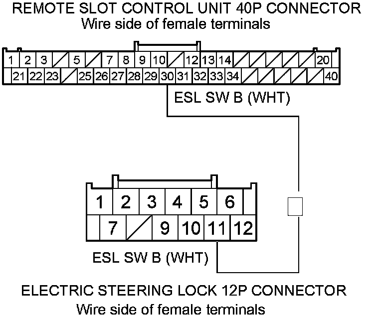 28. Check for continuity between electric steering lock 12P connector terminal No. 11 and remote slot control unit 40P connector terminal No. 30.