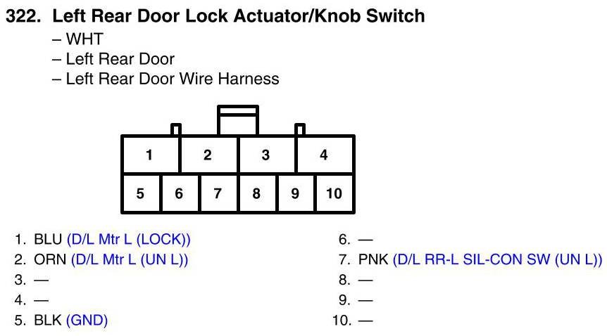 Left Rear Door Lock Actuator/Knob Switch Connector View