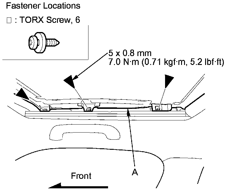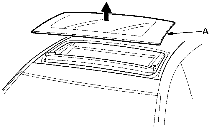 5. Remove the moving glass panel (A) by lifting it up. Do not damage the roof panel.