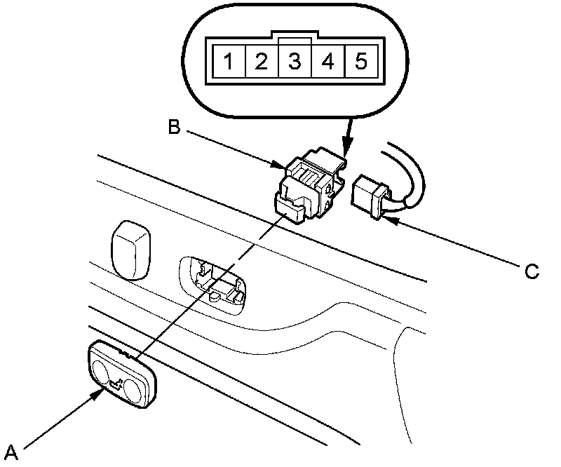 2. Disconnect the 5P connector (C) from the switch.