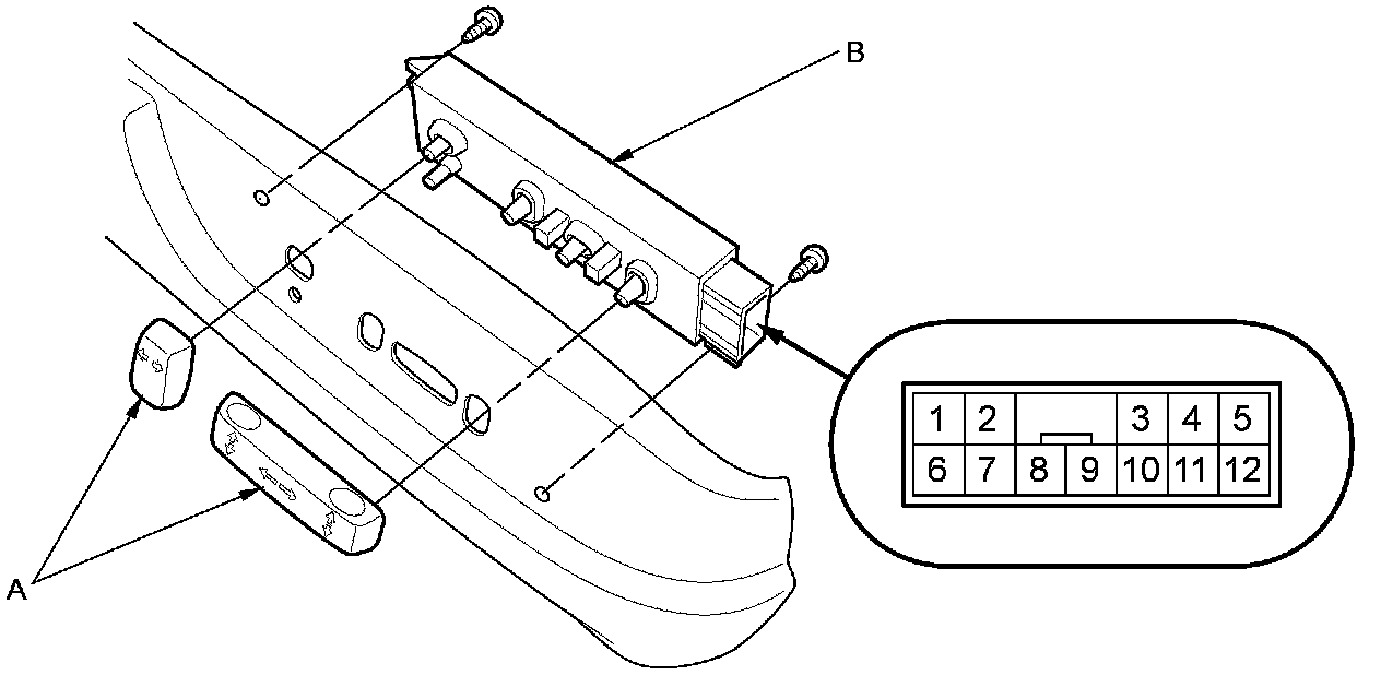 2. Remove the power seat adjustment switch knobs (A) and the recline cover from the front passenger's seat Front Seat Recline Cover Removal/Installation, then remove the two screws and the power seat adjustment switch (B).