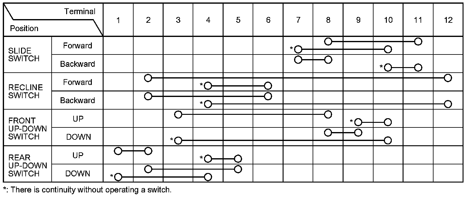 3. Disconnect the 12P connector from the power seat adjustment switch.