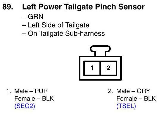 Left Power Tailgate Pinch Sensor Connector View