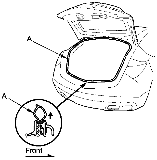 3. Remove the tailgate weatherstrip (A) by pulling it out.