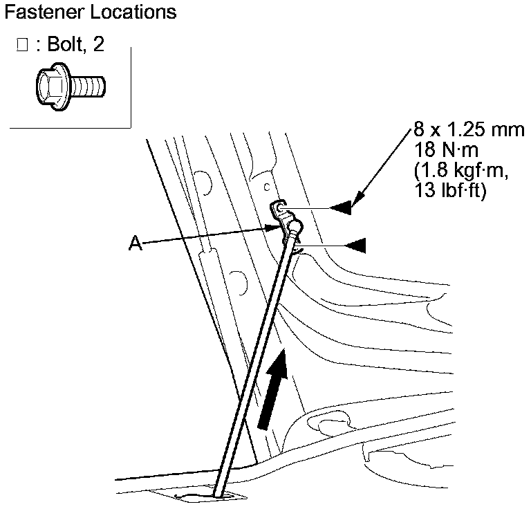 2. Remove the pivot bracket mounting bolts, then push the power tailgate rod (A) in the slit (B) of the quarter pillar trim.