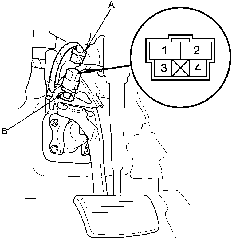 1. Disconnect the 4P connector (A) from the brake pedal position switch (B).