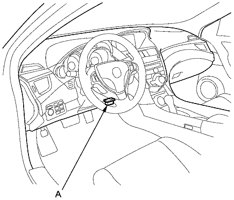 2. Connect the HDS (Honda Diagnostic System) to the data link connector (DLC) (A) located under the driver's side of the dashboard.