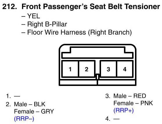 View 212 - Front Passenger's Seat Belt Tensioner Connector View