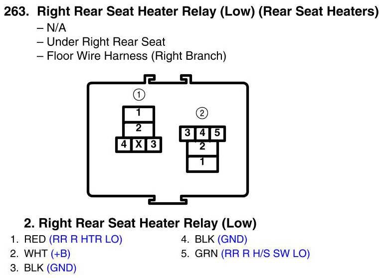 View 263 - Right Rear Seat Heater Relay (Low) Connector View (Rear Seat Heaters)