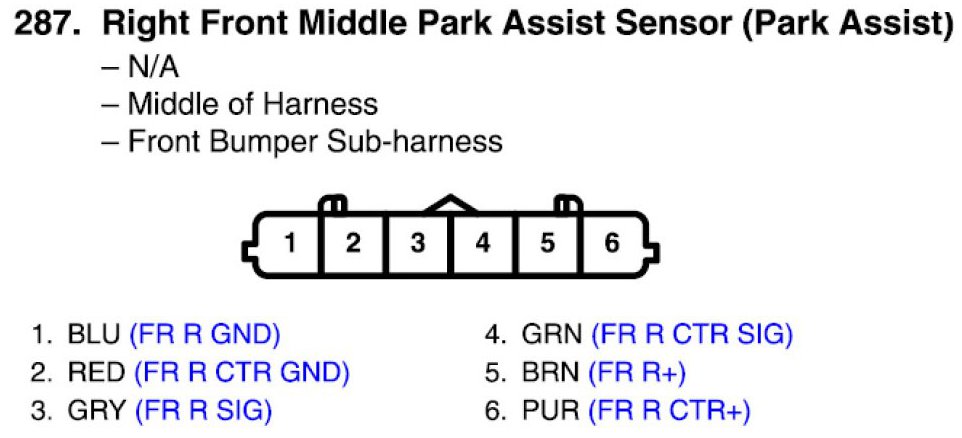 View 287 - Right Front Middle Park Assist Sensor Connector View (Park Assist)