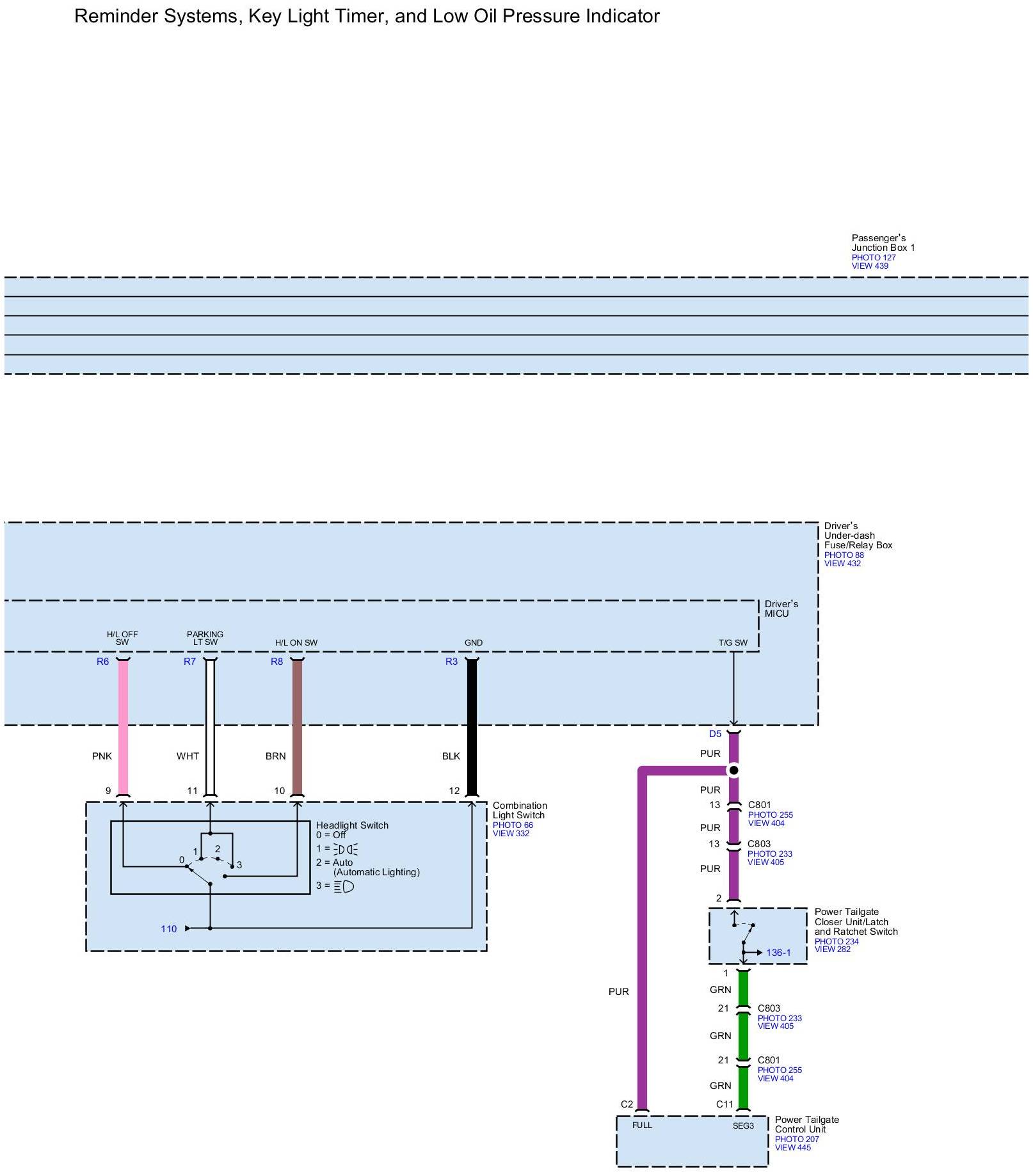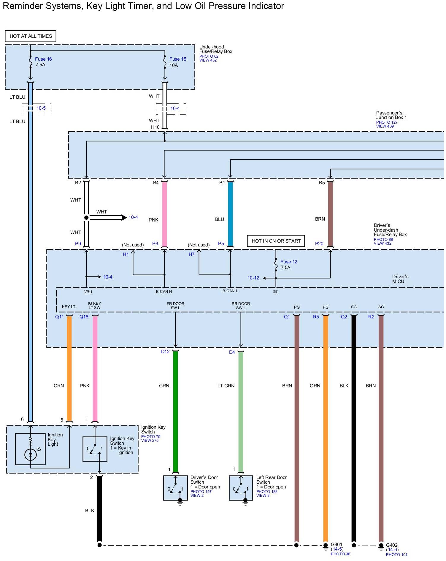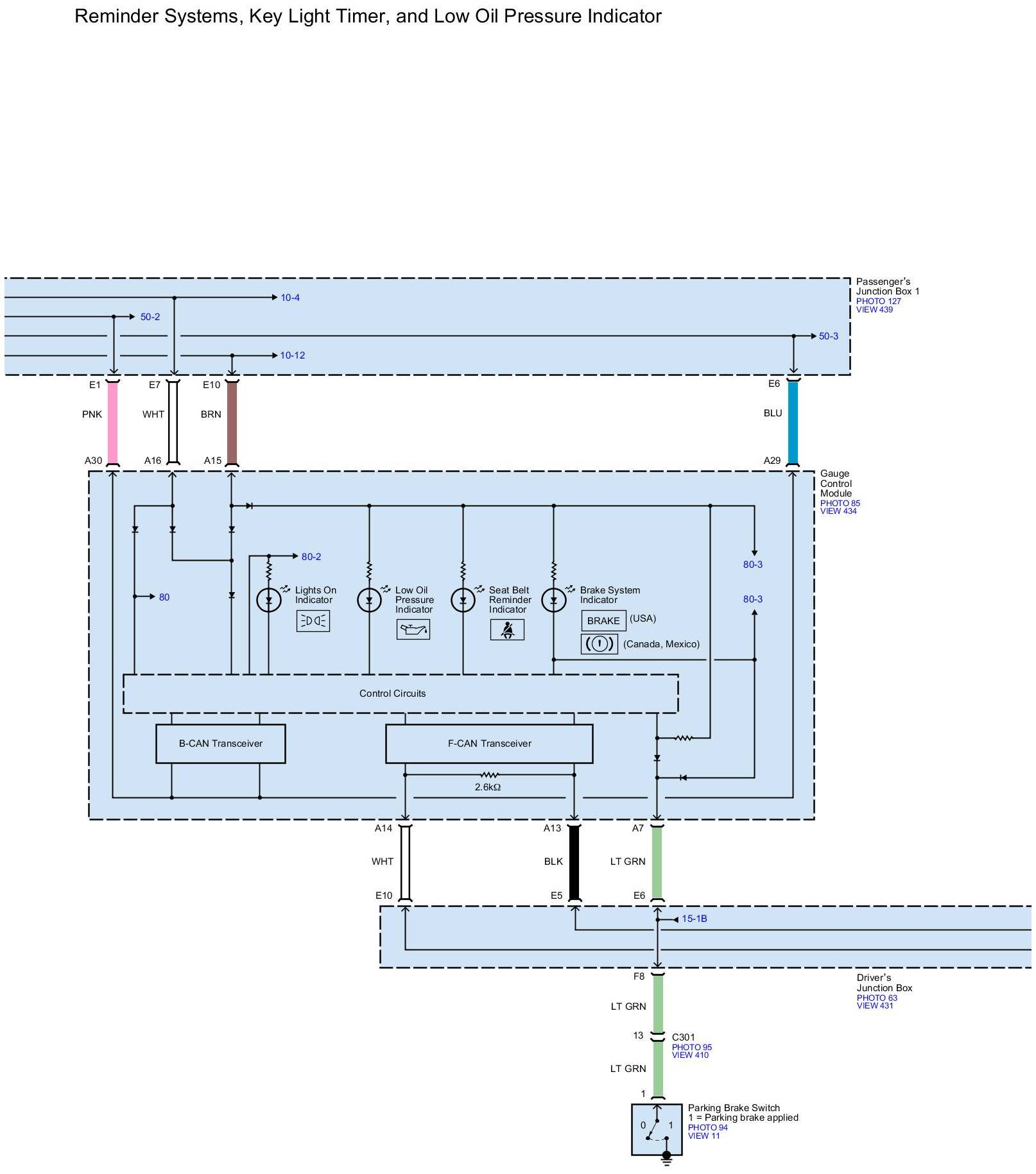 Diagram Set 73 (Reminder Systems, Key Light Timer, And Oil Pressure Indicator)
