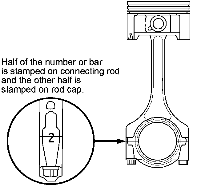 Numbers or bars have been stamped on the side of each connecting rod as a code for the size of the big end. Use them, and the letters or bars stamped on the crank (codes for rod journal size), to choose the correct bearings. If the codes are indecipherable because of an accumulation of dirt and dust, do not scrub them with a wire brush or scraper. Clean them only with solvent or detergent.