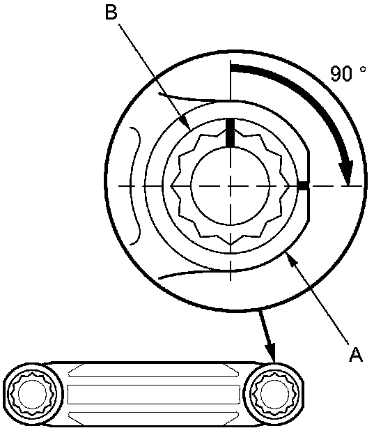 21. Mark the connecting rod (A) and the bolt head (B) as shown.